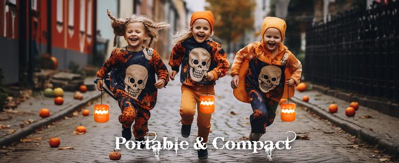 Lightweight foldable handle lets you hang or carry it anywhere! ✨Use the strong lanyard for windows, trees, porches—or take it trick-or-treating to shine bright.