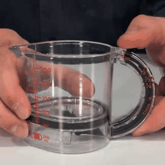 It measures 11.6cm / 4.56in in diameter and 9cm / 3.54in in height , making it easy to hold and store. With a 250ml (1 cup) capacity, it’s the ideal size for precise measuring without taking up extra space in your kitchen. Small footprint, big functionality!