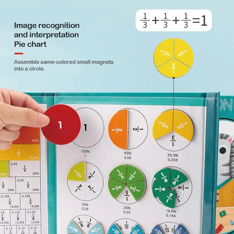 Our Montessori Magnetic Book Fraction Puzzle For Children is here to revolutionize the learning experience, making fractions fun and engaging with toys. Your kids can learn math during play.