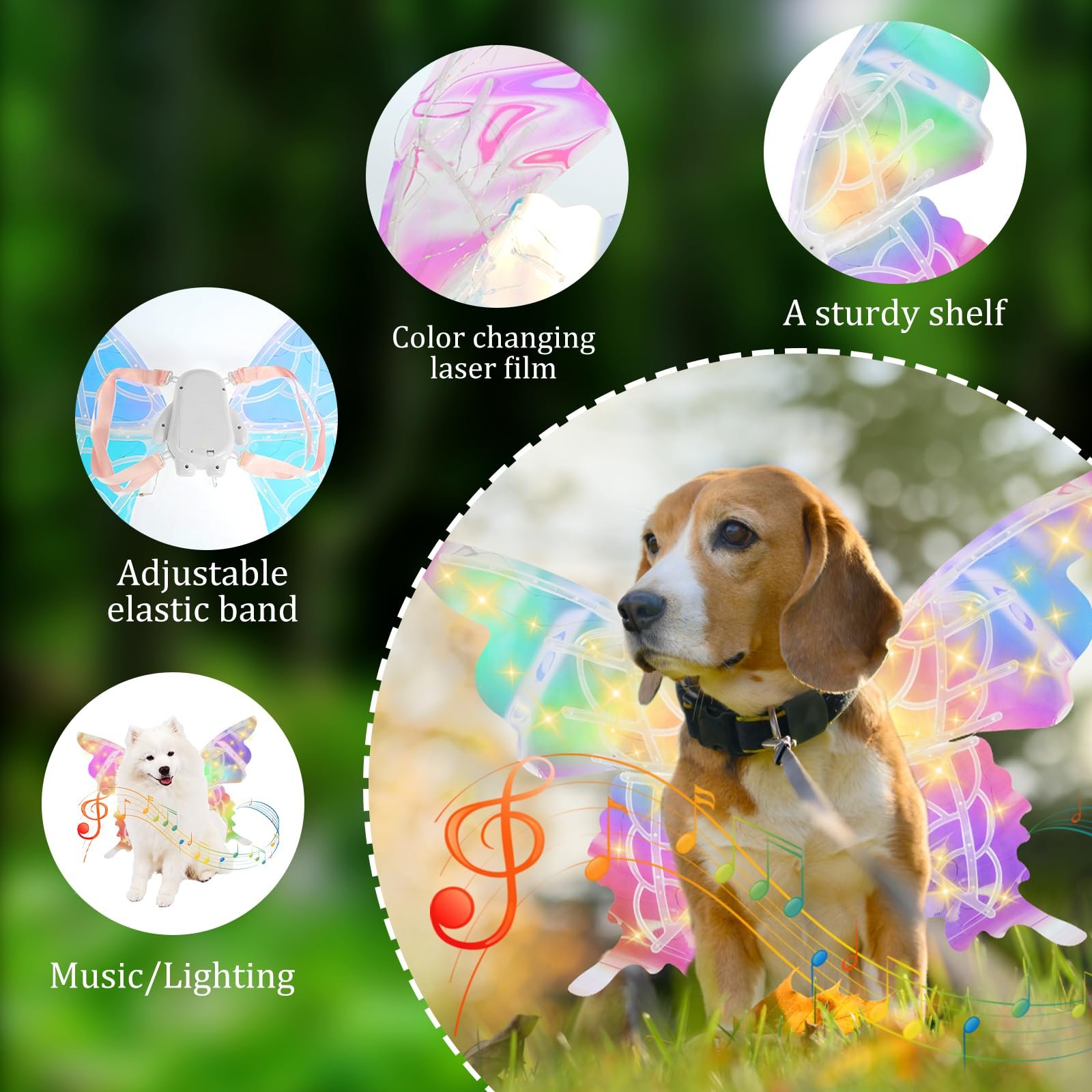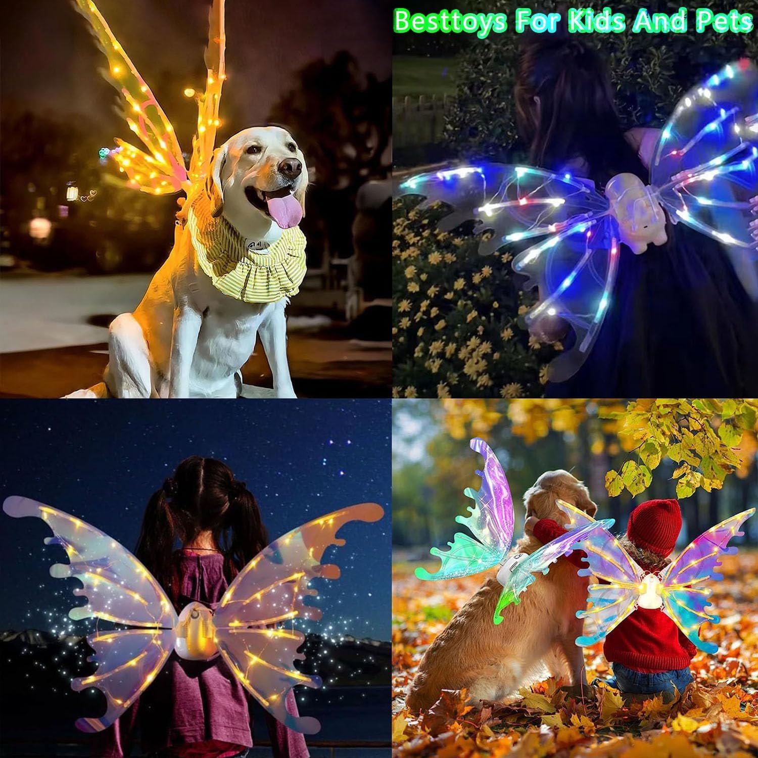 Electric Fluttering Fairy Wings - LED Light Up Costume with Music & Auto Flap for Kids & Pets