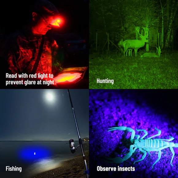 ✔️RGB Colored Light: Choose from red, green, or blue. Red light preserves night vision for hunting and fishing; green light aids in positioning and attracting insects; blue light works for map reading and ambiance.
